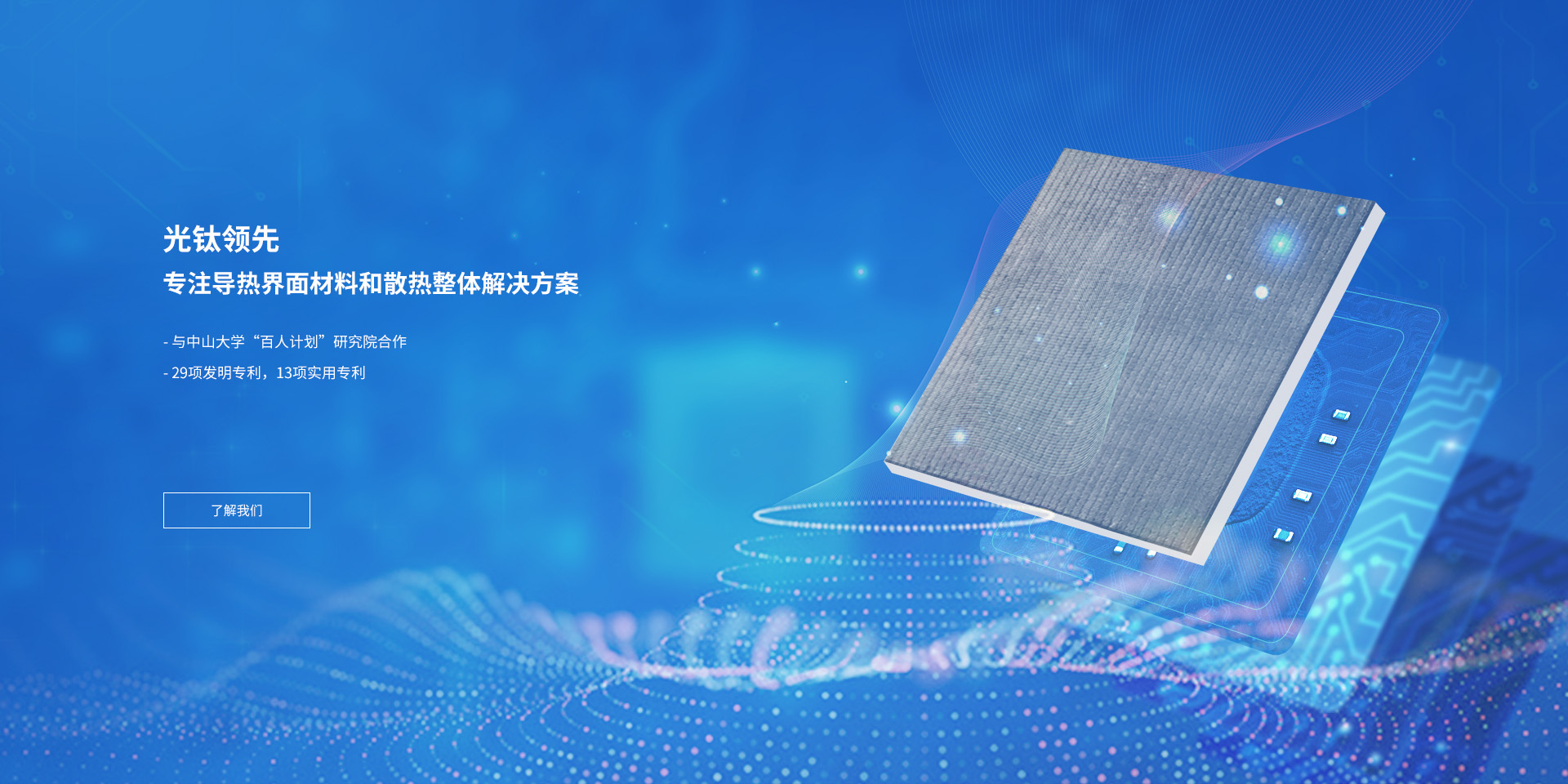 廣東光鈦領(lǐng)先新材料有限公司是廣東光大企業(yè)集團(tuán)旗下拓展科技板塊業(yè)務(wù)的子公司之一,致力于導(dǎo)熱材料及整體解決方案的研發(fā)、生產(chǎn)和銷售。
