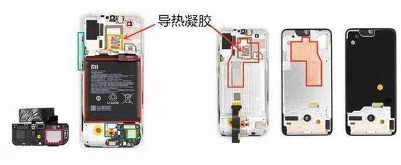 大家應(yīng)該注意到了其中導(dǎo)熱凝膠高散熱材料,這款散熱材料有點類似于本身電腦CPU上的硅脂,它和硅脂的功能一樣,為了有效將CPU中的熱量有效導(dǎo)出給熱管進行散熱,所以這也是熱界面材料從電腦端轉(zhuǎn)向移動端使用的案例。