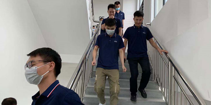 當急促的消防警鈴響起時,公司員工聞聲而動,立即按“安全指示”引導,通過樓梯道有序疏散。光鈦奉行以人為本,安全第一的管理理念,始終將員工生命安全放在第一位。