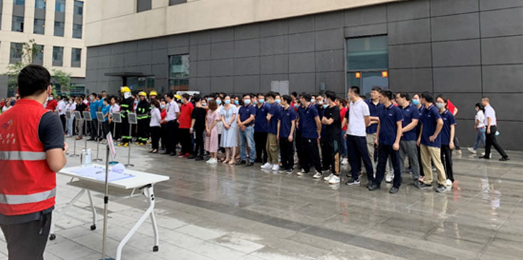 到達一樓指定位置后,各部門人員開始集合報數,確定所有員工到齊。