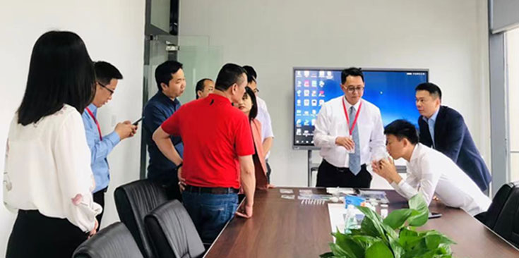 隨后,公司總經理鄭海鵬邀請公司董事長鄭建文、集團總裁陳健民等人來到光鈦會議室,并對公司產品、行業(yè)情況、市場前景等情況作了詳細、專業(yè)的介紹。